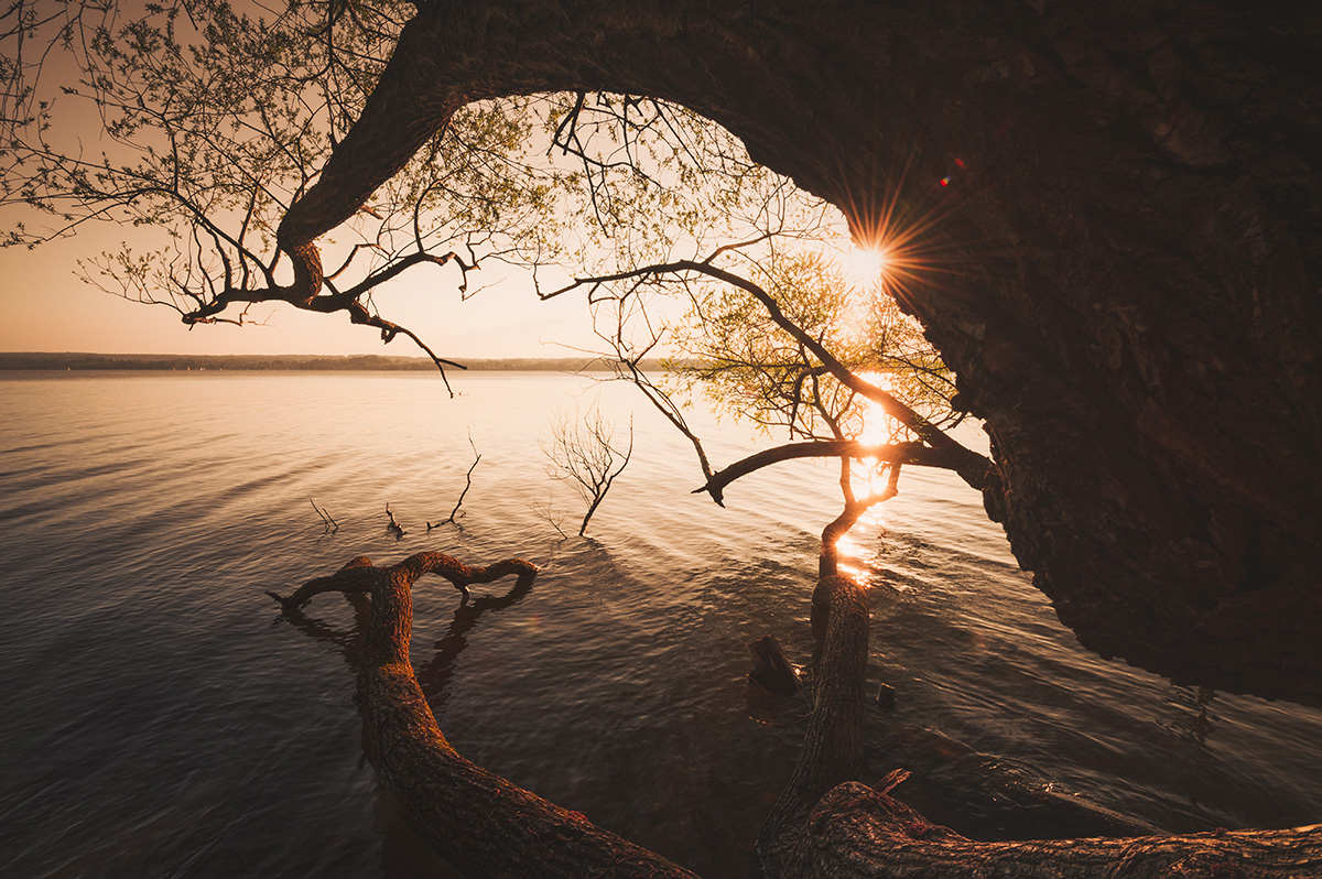 Motiv Wie ein riesiger Kraken greift dieser Baum am Ammersee nach den letzten goldgelben Sonnenstrahlen.