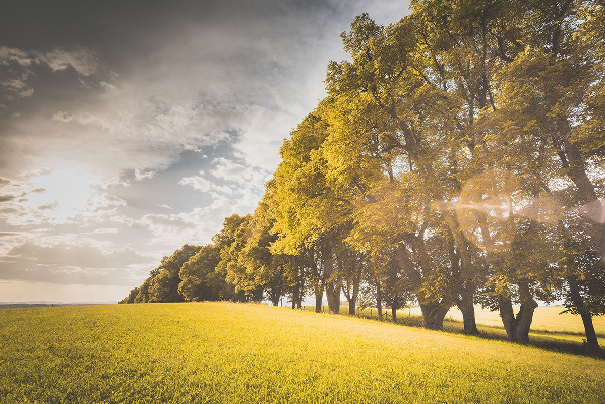 Motiv Die Kurfürstenallee in Marktoberdorf in einer ganz besonderen abendlichen Lichtstimmung. Ein Gewitter liegt in der Luft, aber noch ist es nicht soweit.
