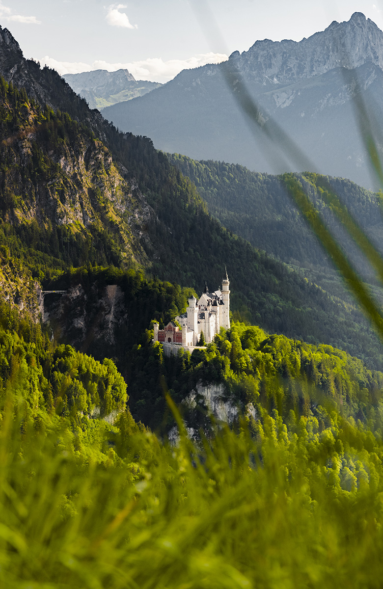Motiv Blick auf das weltberühmte Märchenschloss Neuschwanstein von Ludwig II,. König von Bayern