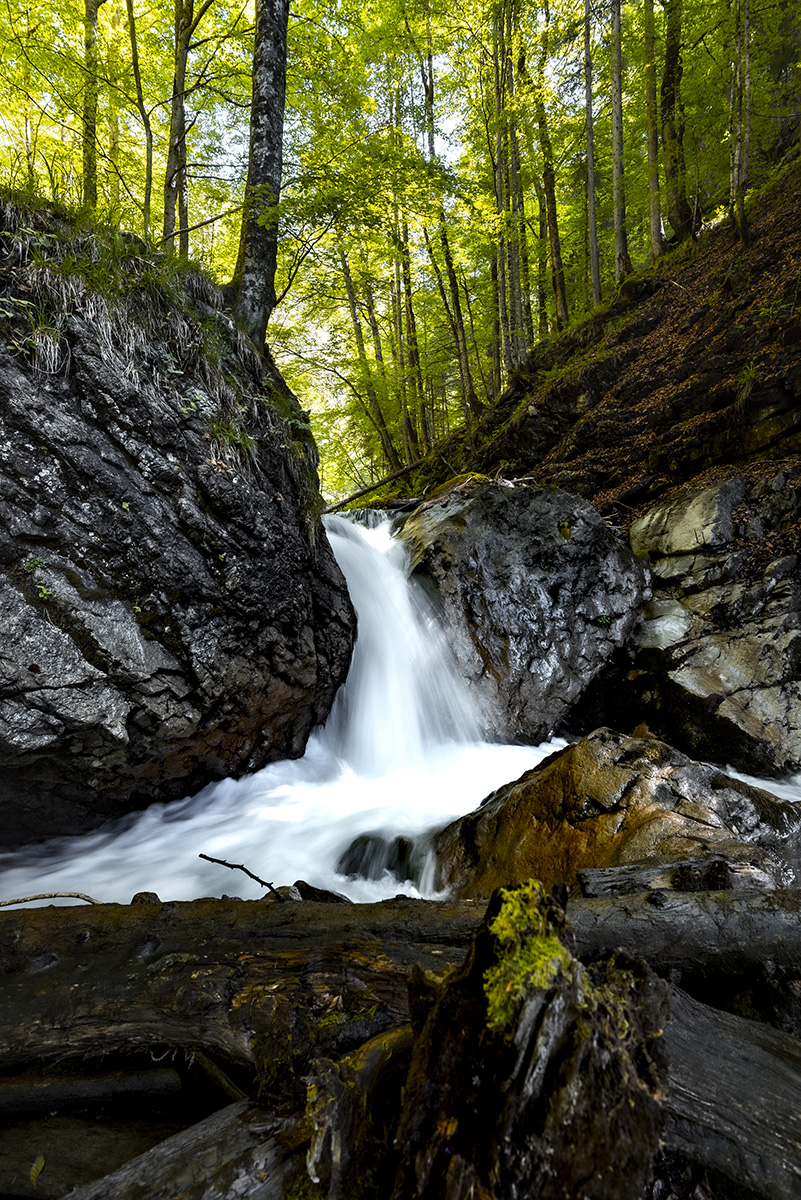Motiv Alles fließt #1. Diesen schönen Wasserlauf mit kleinen Kaskaden kann man beim Aufstieg vom Christlesee über den Hölltobel nach Gerstruben entdecken.